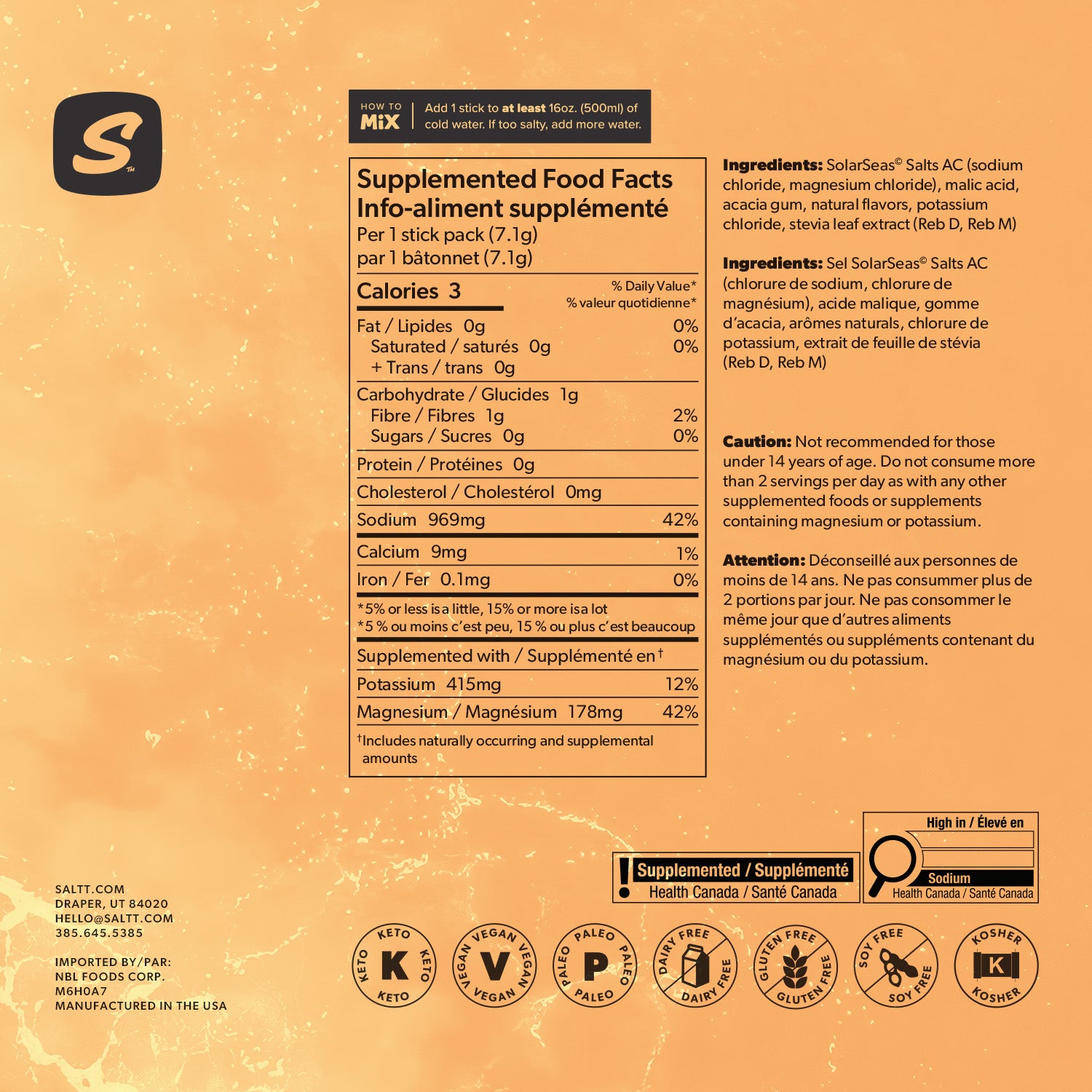 SALTT - Zesty Orange Electrolytes Powder Flavored Drink Mix - 30 Hydration Packets